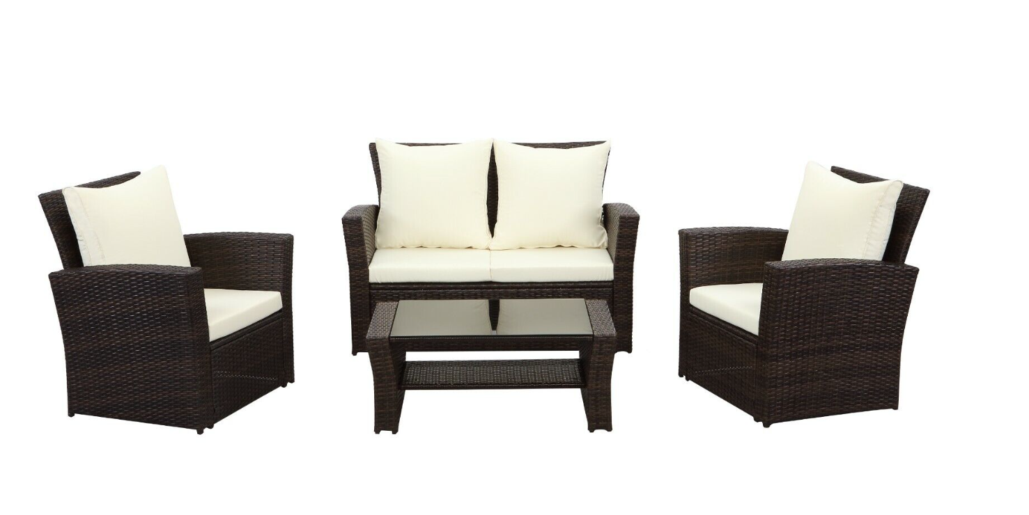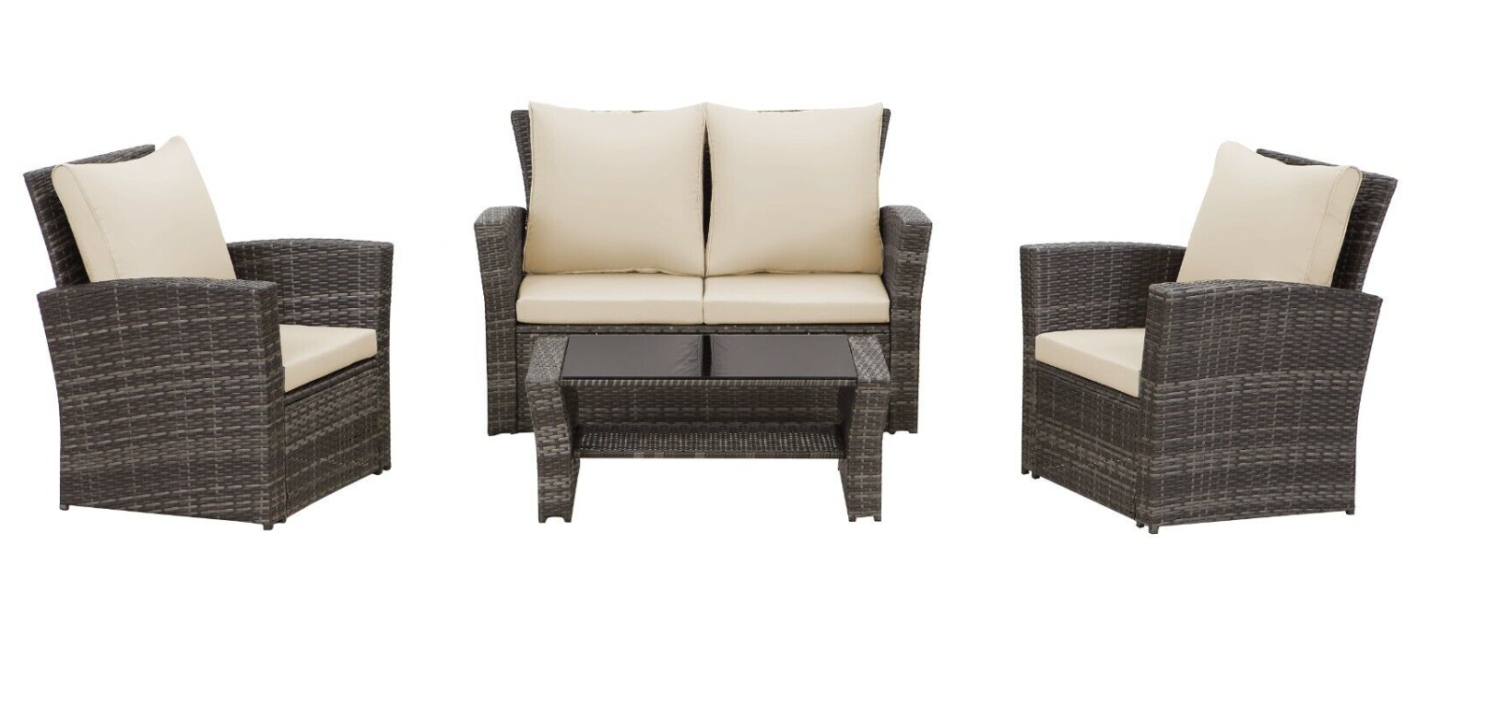 4 Piece Patio Set - Rattan Garden Furniture Table Chairs Grey Black and Brown