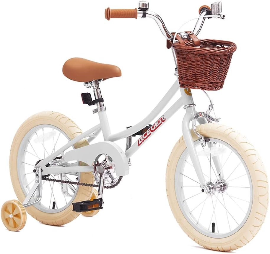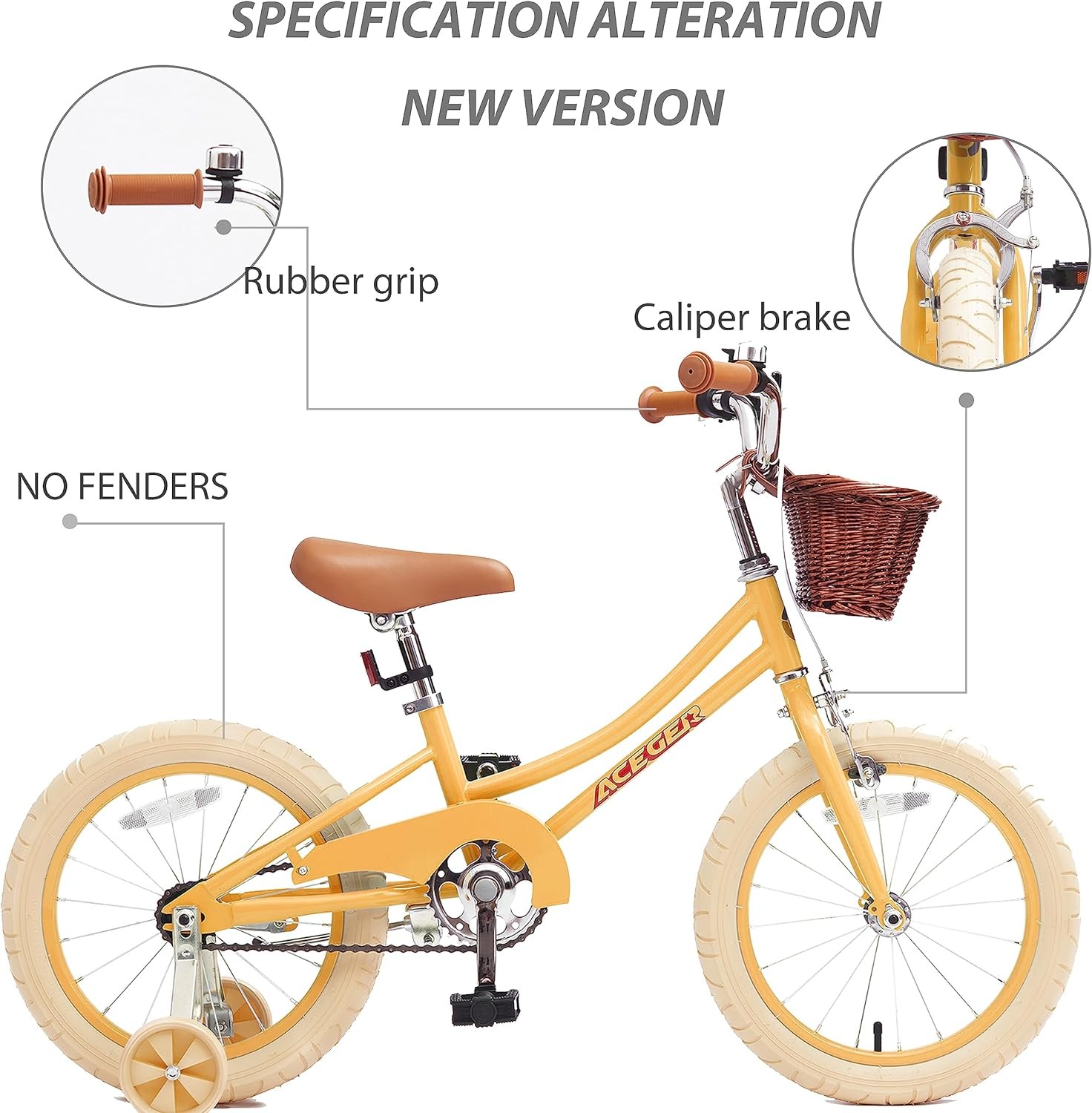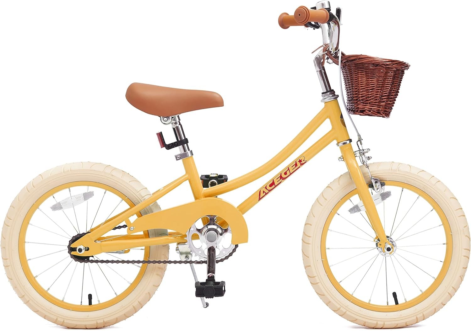 ACEGER Girls Bike with Basket, Kids Bicycle for 3-13 Years, Included Coaster Brake & Caliper Brake, 14 16 18 Inch with Training Wheels, 20 Inch with Kickstand but no Training Wheels