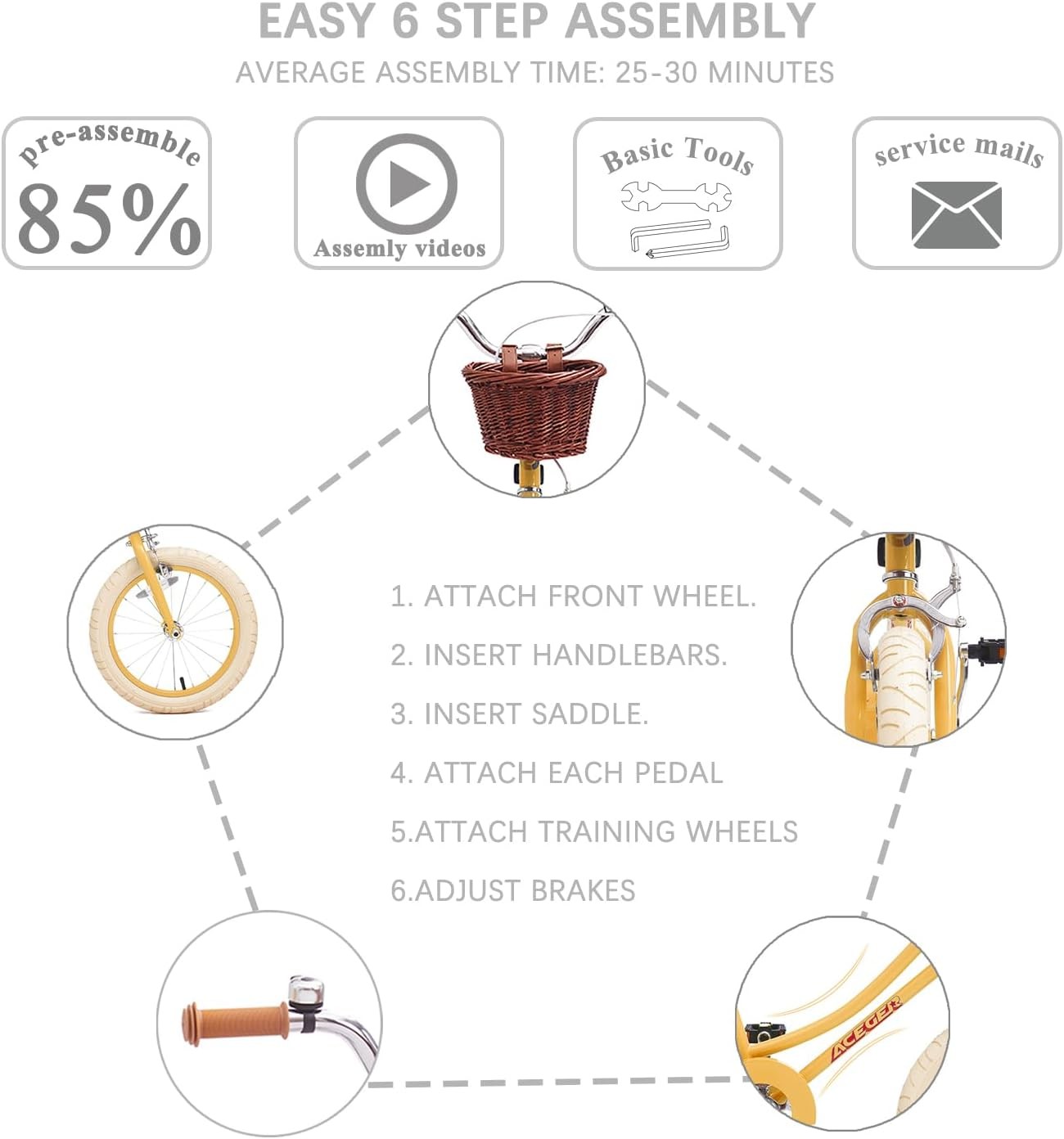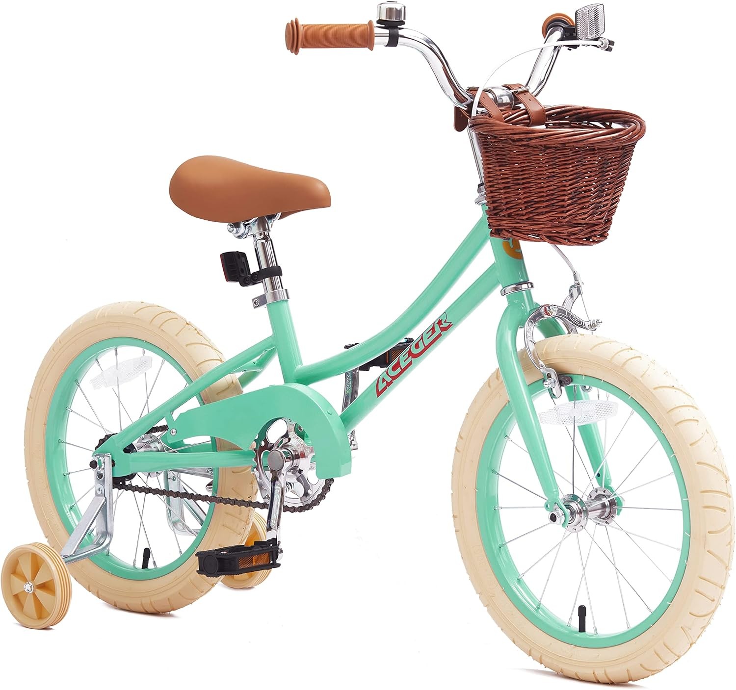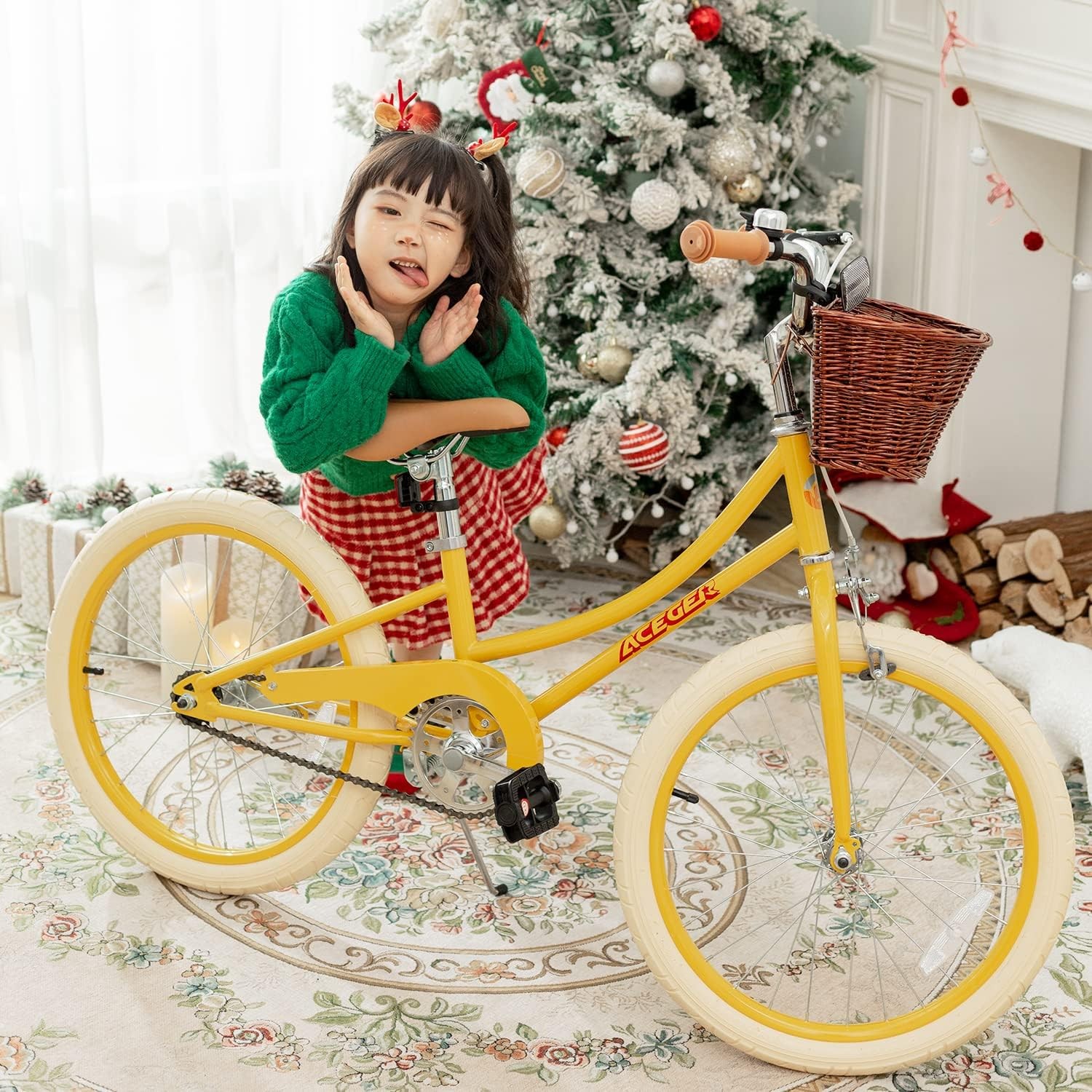 ACEGER Girls Bike with Basket, Kids Bicycle for 3-13 Years, Included Coaster Brake & Caliper Brake, 14 16 18 Inch with Training Wheels, 20 Inch with Kickstand but no Training Wheels
