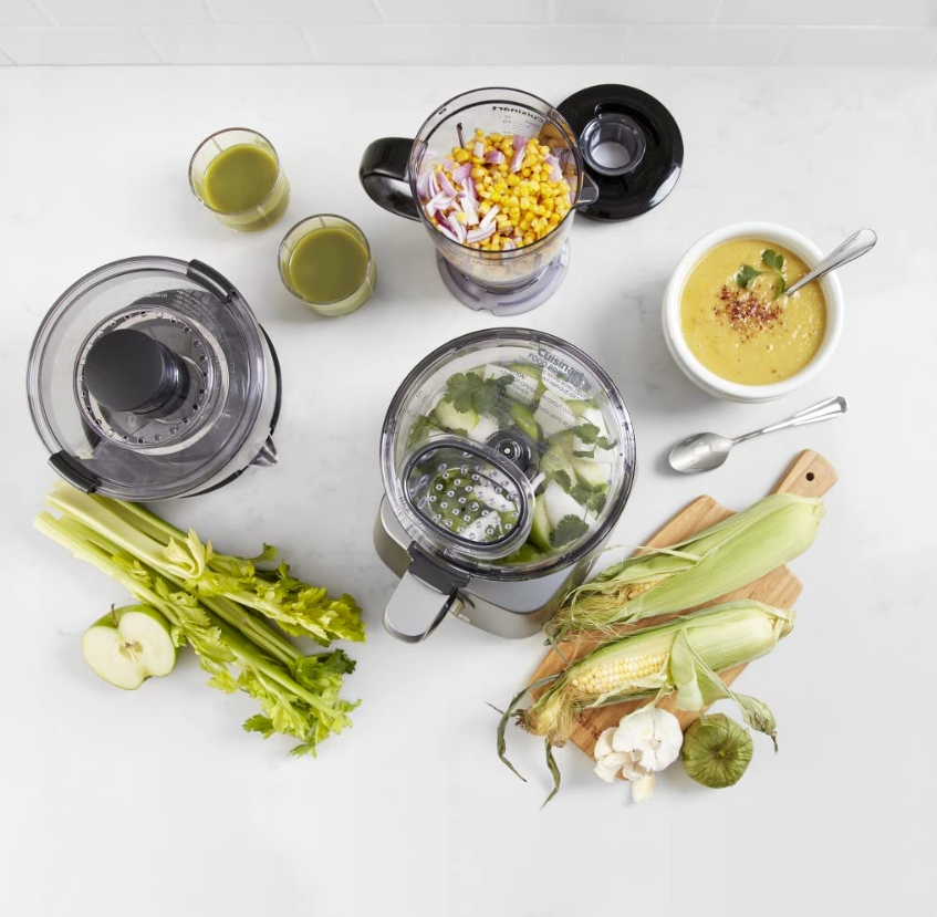 • OPTIONS: The 8-Cup Food Processor can mix, chop, puree, shred and more – The 40-oz. Blender covers the full range of blending tasks from smoothie to pureed soups – The Juice Extractor effortlessly turns whole fruits and vegetables into delicious juice