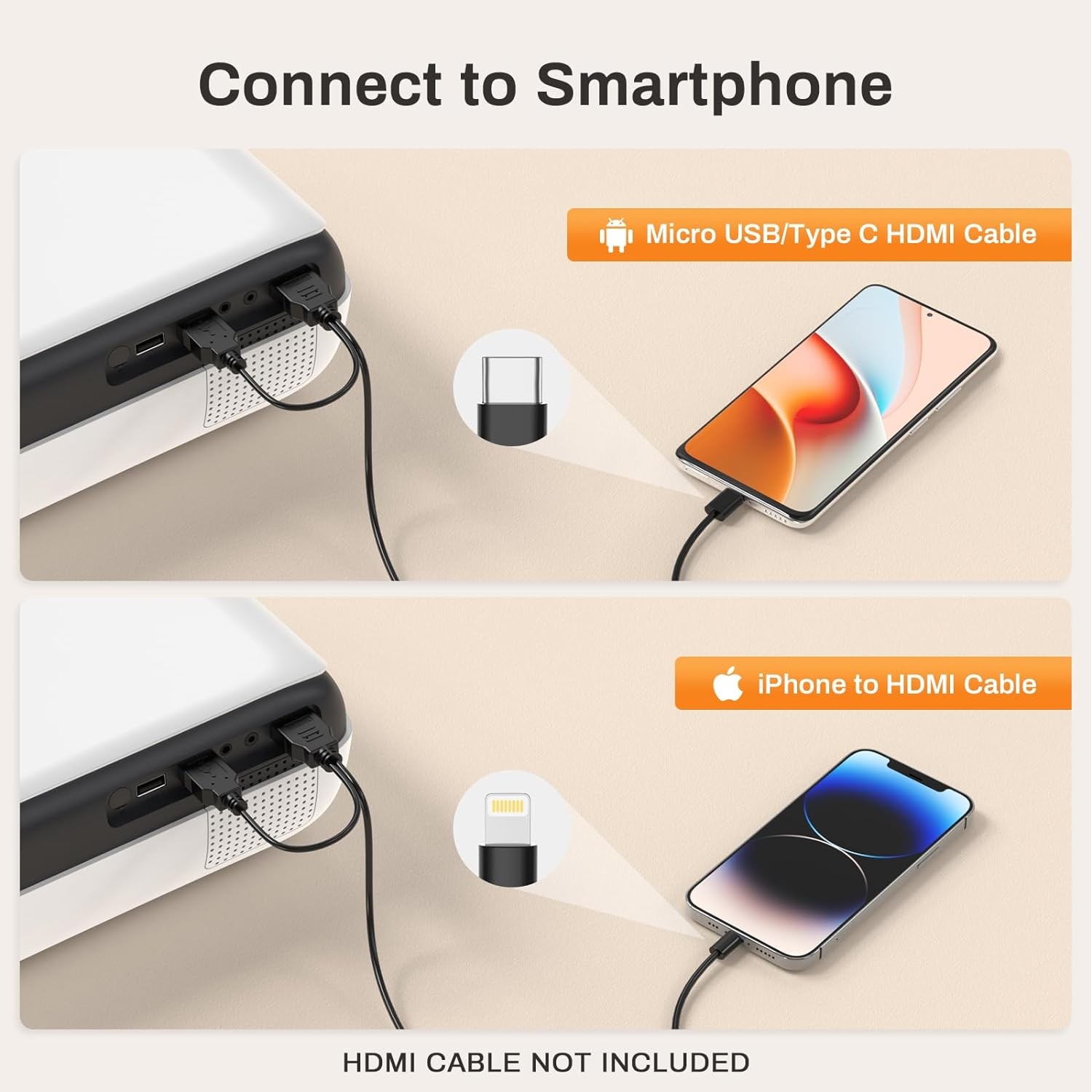 • ?【Native 1080P Full HD Resolution] The projector can deliver you HD movies with 1920*1080 native resolution, which is 4k supported. Equipped with excellent brightness and 10000:1 high dynamic contrast ratio, the hd projector provides sharper, brighter, and richer images! (Portable Projector 100'' Screen Included).