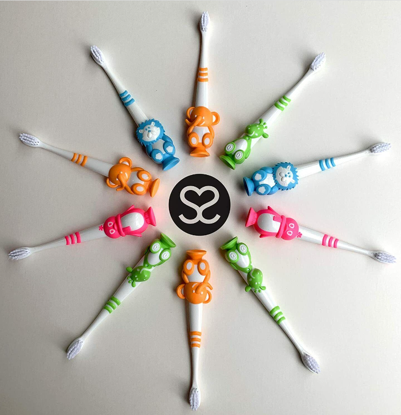 Kids Animal Toothbrush Ultra-Soft Bristles with Suction Cup Base (pack of 4)
