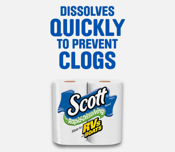 You’ve been around and so have we—Scott Rapid-Dissolving toilet paper is the #1 choice made for RVs, boats, buses, campers and more. With Scott Rapid-Dissolving Toilet Paper, you get 12 regular rolls of 231 sheets, so you have plenty of septic-safe toilet paper that breaks down after use. And our toilet papers are perfect for sensitive plumbing systems and get the job done but are soft and gentle on skin. You won’t even have to worry about clogged pipes: Scott Rapid-Dissolving RV toilet paper is Clog Clinic tested and made of 100% biodegradable tissues. When you’re ready to hit the road, take the septic-safe toilet paper you can trust to help protect your plumbing with our camper toilet paper. We’ve been trusted for generations: Each roll of Scott Rapid-Dissolving Toilet Paper features FSC-certified fiber. *vs the leading brand one ply
