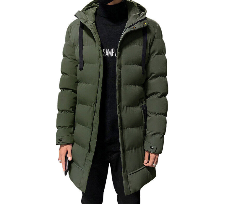 Winter Mens Long Puffer Coat Hooded Cotton Bubble Jacket Quilted Padded Overcoat