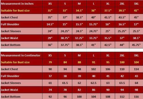 • Postage & packaging charges are not refundable in any circumstances, the cost of return and postage charges of second jacket in case of exchange would be paid by buyer, therefore please select your size by reading our size charts carefully to avoid later issues.